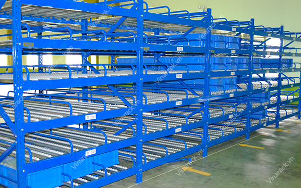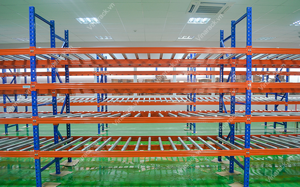 Carton Flow Racking Vinarack system is often used in cargo storage centers, warehouses, factories ... there are many categories but the number of goods is not much or goods export / import according to the principle of "First in - First"/ FIFO.